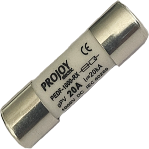 Ασφάλεια 20Α DC 10Χ38mm, για προστασία από βραχυκύκλωμα σε γραμμές διανομής φωτοβολταϊκών, με ονομαστική τάση που δεν υπερβαίνει τα 1000V/DC και ονομαστικό ρεύμα 20Α.