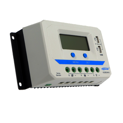 Ρυθμιστής φόρτισης 30Α από την EPsolar με οθόνη LCD. Κατάλληλος για αυτόνομα συστήματα 12V / 24V. Η νέα σειρά ρυθμιστών VS-AU εκπληρώνουν καλύτερα τις απαιτήσεις των συστημάτων, διαθέτουν διπλή έξοδο USB για οποιαδήποτε χρήση, μεγάλη οθόνη LCD ώστε να μπορείτε να ενημερώνεστε για όλες τις καταστάσεις λειτουργίας με τη χρήση συμβόλων, καθώς και γραφική αναπαράσταση της κατάστασης φόρτισης με χρήση κλίμακας. Άλλα δεδομένα όπως τάση, ρεύμα αναπαρίστανται ψηφιακά.