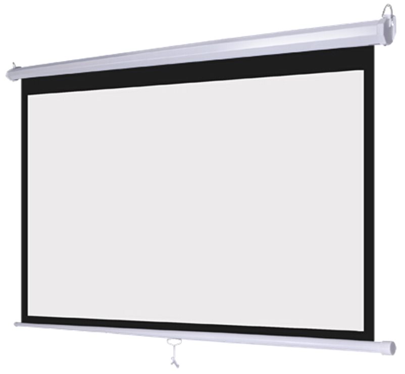 Χειροκίνητη οθόνη προβολής 84‘‘, 190x100cm (Μήκος x Ύψος), 16:9, μηχανισμός που "κλειδώνει" σε οποιοδήποτε σημείο του κατεβάσματος του πανιού, εύκολη στερέωση από τοίχο ή οροφή.