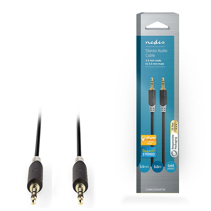 Καλώδιο ήχου 3,5mm Stereo αρσ. - αρσ., 3m, σε ανθρακί χρώμα.Κατάλληλο για τη σύνδεση μιας συσκευής με έξοδο 3,5mm, π.χ. ηχεία, σε μια συσκευή αναπαραγωγής μουσικής.- Σύνδεση 1: 3,5mm Stereo αρσ.- Σύνδεση 2: 3,5mm Stereo αρσ.- Eπίχρυσες επαφές- Μήκος: 3.0 m- Διάμετρος: 4.0 mm- Εξωτερικό υλικό: PVC- Χρώμα: Ανθρακί- Συσκευασία: Κουτί