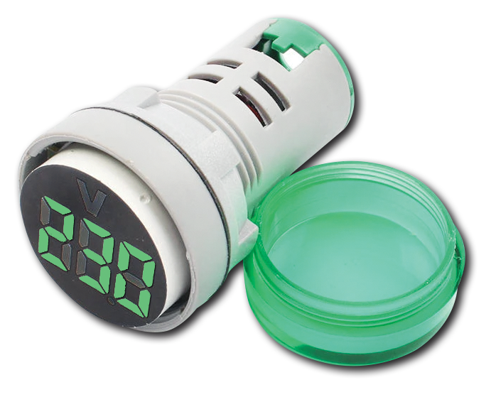 Ενδείξεις: Ψηφιακές (LED οθόνη 3 ψηφίων) της τάσης (Volt)Διαστάσεις: 50X25mmΔιάμετρο φ: 22mm