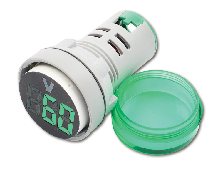 Ενδείξεις: Ψηφιακές (LED οθόνη 3 ψηφίων) της τάσης (Volt)Διαστάσεις: 50X25mmΔιάμετρο φ: 22mm