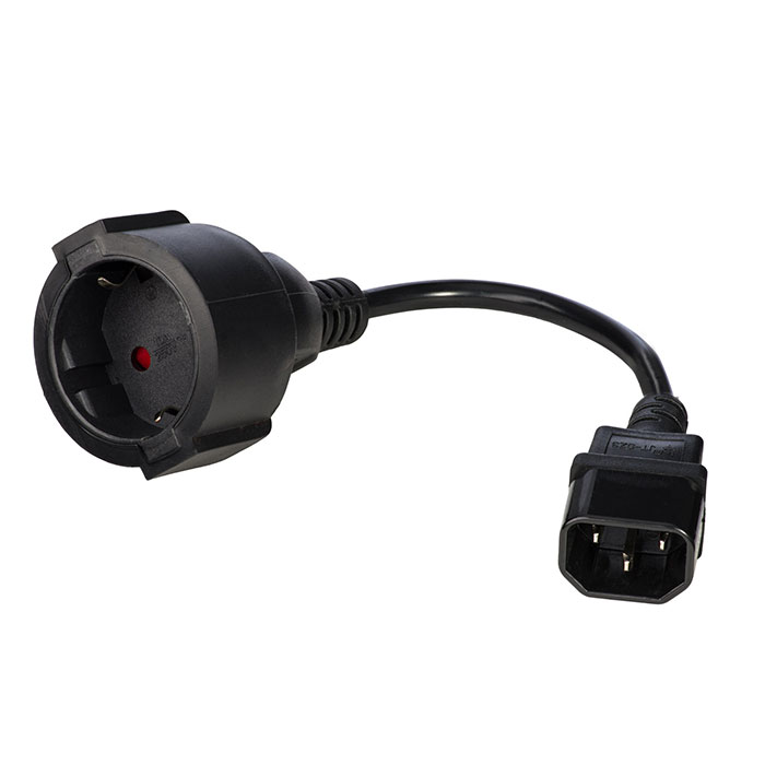 Καλώδιο τροφοδοσίας/προέκταση Schuko θηλ. - IEC-C14 αρσ., 15 cm.- Σύνδεση 1: Schuko CEE 7/4- Σύνδεση 2: IEC-C14- Διάμετρος: 7mm- Διατομή: 3 x 1mm- Μήκος: 15 cm- Τάση εξόδου: 250V, 10A- Χρώμα: Μαύρο