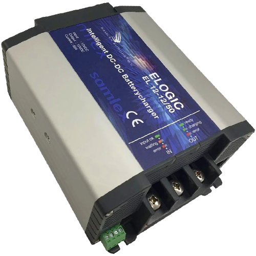 Ο φορτιστής Elogic λαμβάνει υπόψη όλα αυτά τα προγράμματα και φορτίζει εφόσον η μπαταρία του οχήματος είναι μεγαλύτερη από 12,5V.Με τον εξελιγμένο σχεδιασμό του διατηρεί τις μπαταρίες σε άριστη κατάσταση και ελαχιστοποιεί τις αστοχίες, με αποτέλεσμα τη μέγιστη διάρκεια ζωής της μπαταρίας επιτρέποντάς να εγκαταστήσετε μια δεύτερη μπαταρία στο αυτοκίνητό σας. Ανεξάρτητα από την τάση του εναλλάκτη, ο φορτιστής Elogic παρέχει μια προ-προγραμματισμένη τάση και ρεύμα φόρτισης στη δεύτερη μπαταρία. Το Elogic θα παρέχει ρεύμα έως και 50 αμπέρ σε ένα σύστημα 12 volt, ανάλογα με την κατάσταση φόρτισης της δεύτερης μπαταρίας. Μετά από μια φόρτιση ενίσχυσης (ταχεία φόρτιση), ο φορτιστής θα μεταβεί αυτόματα σε λειτουργία float, έτσι ώστε η δεύτερη μπαταρία να μην υπερφορτίζεται ποτέ. Όλα αυτά ανεξάρτητα από το επίπεδο της τάσης του εναλλάκτη. Εγκατάσταση του διανομέα / φορτιστή ρεύματος φόρτισης Samlex Elogic Για να λειτουργήσει, το Elogic πρέπει να συνδεθεί στην επαφή της μίζας όσο το δυνατόν πιο κοντά στον θετικό πόλο της μπαταρίας της μίζας. Ο φορτιστής θα σταματήσει να φορτίζει εάν η ανάφλεξη της μίζας είναι απενεργοποιημένη ή εάν η τάση της μπαταρίας της μίζας πέσει κάτω από 12,4 βολτ, ανάλογα με τον τρόπο σύνδεσης του Elogic. Το ELOGIC έχει το σήμα ποιότητας αυτοκινήτου E11 και κατάλληλος για κάθε περίπτωση που απαιτείται αξιόπιστη DC τροφοδοσία.
