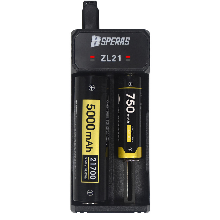 The SPERAS ZL21 is a portable dual-slot Type C-USB battery charger with each single slot max output of 1A, available for large-sized 21700, 18650 Lithium batteries and Capable of charging 2 batteries simultaneously and controlling each slot.