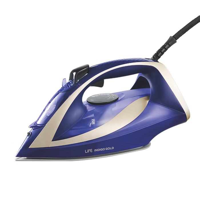 Ατμοσίδερο με πλάκα κεραμικής επίστρωσης, 3000W.Το ατμοσίδερο LiFE INDIGO GOLD με ισχύ 3000W αποτελεί μια κορυφαία λύση για τέλεια σιδερωμένα ρούχα, εύκολα και γρήγορα! Διαθέτει εξαιρετικά μεγάλη πλάκα με κεραμική επίστρωση, ρυθμιζόμενο θερμοστάτη, παραγωγή ατμού 18~30gr/min και επιλογή στεγνού σιδερώματος ή σιδερώματος με ατμό.Επιπλέον, διαθέτει δυνατότητα κάθετου σιδερώματος με ατμό, που επιτρέπει να φρεσκάρετε τα ρούχα που έχετε σε κρεμάστρες αλλά και να σιδερώσετε τις κουρτίνες ή άλλα υφάσματα χωρίς να χρειάζεται να τα ξεκρεμάσετε.Επίσης, με το πλήκτρο έξτρα ατμού, παρέχει μια ενισχυμένη ποσότητα ατμού, ιδανική για τις επίμονες τσακίσεις και ζάρες. Επιπλέον, διαθέτει σύστημα αυτόματου καθαρισμού "Self-cleaning", το οποίο καθαρίζει και προστατεύει το σίδερο σας από τη συσσώρευση αλάτων. Το πλήκτρο ατμού βρίσκεται τοποθετημένο σε εργονομική θέση "σκανδάλης" για να το χρησιμοποιείτε με τον δείκτη του χεριού σας όποτε το χρειάζεστε. Τέλος, συμπεριλαμβάνεται δοχείο για την πλήρωση της δεξαμενής νερού χωρητικότητας 450ml που διαθέτει, έχει υφασμάτινο καλώδιο με εύκαμπτη βάση και πολύ μεγάλο μήκος 2.5m για μέγιστη ευελιξία. Το LiFE INDIGO GOLD διαθέτει αυτόματη απενεργοποίηση 30 δευτερόλεπτά αφού μείνει ακίνητο με στραμμένη την πλάκα προς τα κάτω και 8 λεπτά αφού παραμείνει ακίνητο σε κάθετη θέση για μέγιστη ασφάλεια!Χαρακτηριστικά:• Μεγάλο μήκος καλωδίου 2.5m για μέγιστη ευελιξία• Πλάκα με κεραμική επίστρωση • Υφασμάτινο καλώδιο με ευέλικτη περιστρεφόμενη βάση• Λειτουργία αυτόματης απενεργοποίησης σε περίπτωση που το σίδερο παραμείνει ακίνητο (σε κάθετη θέση: μετά από 8 λεπτά,σε οριζόντια θέση: μετά από 30 δευτερόλεπτα)• Παραγωγή ατμού: 18~30g/min• Διακόπτης ελέγχου ατμού• Ρυθμιζόμενος θερμοστάτης • Δυνατότητα κάθετου σιδερώματος, ιδανικό για κουρτίνες, ρούχα σε κρεμάστρα κ.ά • Extra ποσότητα ατμού (0.4~0.7g/πάτημα), για δύσκολες επίμονες τσακίσεις και ζάρες• Πλήκτρο ψεκασμού νερού σε εργονομική θέση• Επιλογή στεγνού σιδερώματος ή με ατμό• Λειτουργία αυτόματου καθαρισμού, που προστατεύει το σίδερο από την συσσώρευση αλάτων• Ενδεικτική λυχνία θερμοκρασίας• Δεξαμενή νερού 450ml• Συμπεριλαμβάνεται δοχείο συμπλήρωσης νερού• Τροφοδοσία: 220-240V~, 50-60Hz• Ισχύς: 2520W-3000W• 2 χρόνια εγγύηση
