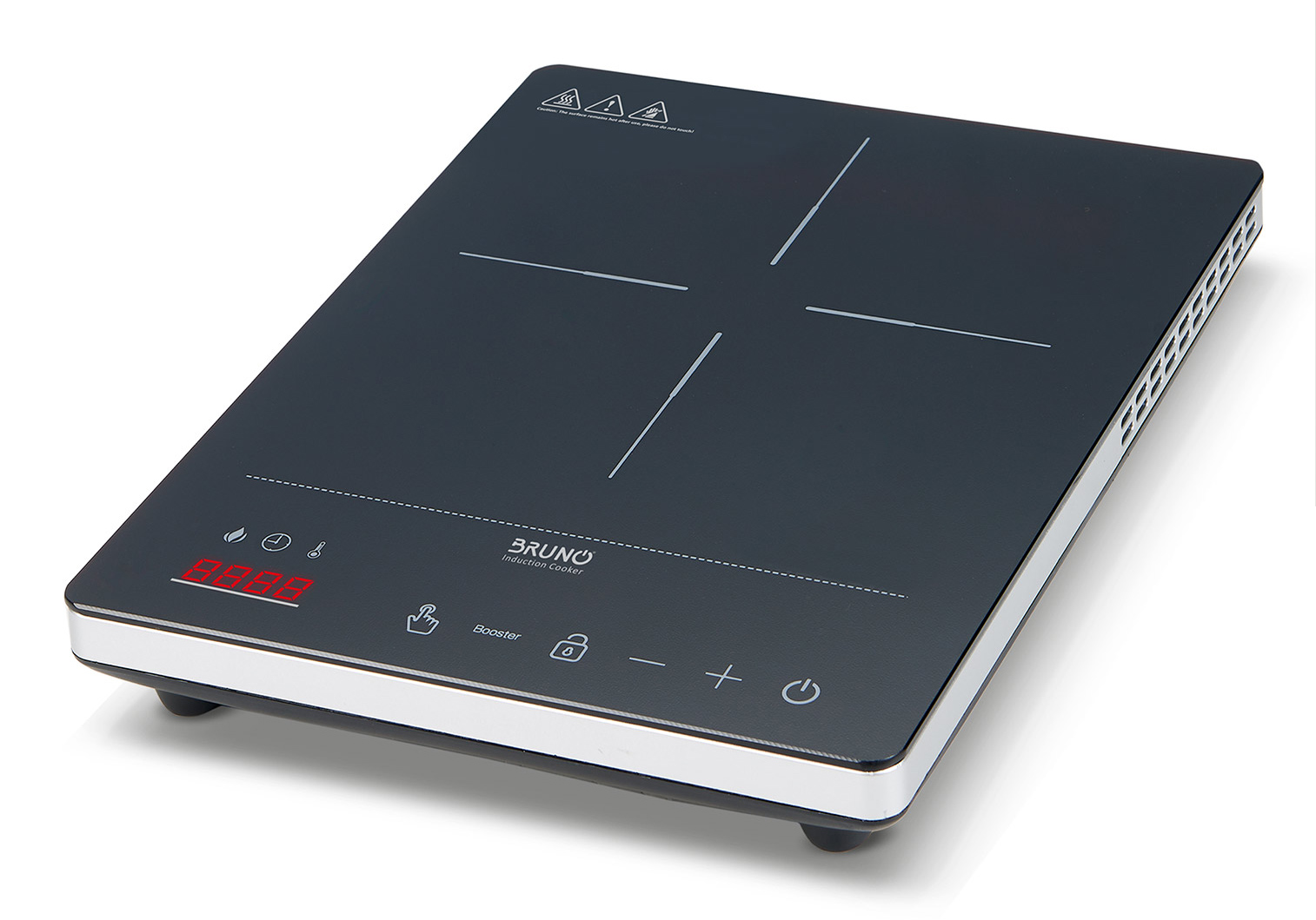 Το πάνελ χειρισμού είναι πλήρως ψηφιακό με κουμπιά αφής. Το μενού του πάνελ είναι προγραμματισμένο ώστε να εξυπηρετεί την πρακτικότητα και παράλληλα η οθόνη LCD και οι βολικές ενδείξεις λειτουργιών ή σφαλμάτων κάνουν το μαγείρεμα με την επαγωγική εστία της Bruno μια πολύ εύκολη διαδικασία.