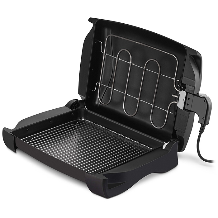 Επιτραπέζια ηλεκτρική ψησταριά με άνω αντίσταση και καπάκι, 1100W.H νέα επιτραπέζια ηλεκτρική ψησταριά LiFE Steakhouse ήρθε για να ξεχωρίσει, έχοντας την αντίσταση στο καπάκι για ομοιόμορφο ψήσιμο χωρίς καπνό και χωρίς πιτσιλιές!Απλά συνδέστε την ψησταριά στο ρεύμα και ξεκινήστε το ψήσιμο. Η LiFE Steakhouse σας δίνει ένα εξαιρετικό αποτέλεσμα ψησίματος, με όλη την επιπλέον άνεση που σας προσφέρει μια ηλεκτρική συσκευή. Μπορείτε να την χρησιμοποιήσετε στην κουζίνα, στο μπαλκόνι ή στον κήπο σας, αλλά και να την μεταφέρετε εύκολα στο εξοχικό σας για το Σαββατοκύριακο, καθώς το μόνο που χρειάζεται για να λειτουργήσει είναι μια πρίζα.Διαθέτει μεγάλη επιφάνεια ψησίματος 34 x 26 cm, η οποία σας επιτρέπει να ψήσετε μεγάλη ποσότητα κρεάτων και λαχανικών ταυτόχρονα, ρυθμιζόμενο θερμοστάτη για να ρυθμίζετε εσείς την θερμοκρασία ψησίματος ανά πάσα στιγμή και καπάκι που κλείνει για να περιορίζει τις οσμές, αλλά και να "παγιδεύει" την θερμότητα. Η αντίσταση της είναι τοποθετημένη στο επάνω μέρος, οπότε και δεν επηρεάζεται από τα λίπη, τα οποία πέφτουν στο κάτω μέρος της συσκευής.Για ακόμα καλύτερα αποτελέσματα και για πιο μαλακό κρέας, μπορείτε να προσθέσετε λίγο νερό στο κάτω μέρος της συσκευής.Το καθάρισμά της γίνεται πανεύκολα, χάρη στην αποσπώμενη σχάρα και στην αποσπώμενη αντίσταση.Χαρακτηριστικά:• Αντίσταση μόνο στο καπάκι, για ομοιόμορφο ψήσιμο χωρίς καπνό• Ψήσιμο χωρίς πιτσιλίσματα από λίπη και υγρά, χάρη στην άνω αντίσταση και το καπάκι• Μεγάλη επιφάνεια ψησίματος: 34 x 26cm• Ρυθμιζόμενος θερμοστάτης • Πρακτικές πλαϊνές χειρολαβές • Αποσπώμενη σχάρα και αντίσταση για εύκολο καθαρισμό• Καπάκι που κλείνει και περιορίζει τις οσμές• Τροφοδοσία: 220-240VAC, 50/60Hz• Ισχύς: 1100W• 2 χρόνια εγγύηση