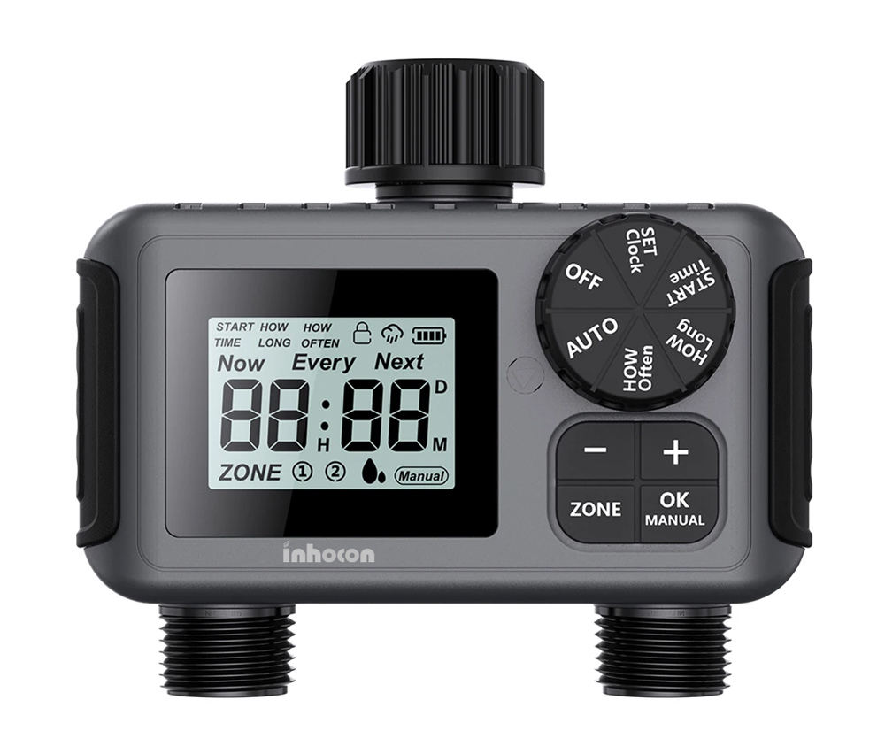 Ψηφιακός προγραμματιστής ποτίσματος της Inhocon, ιδανικός για εργασίες που σχετίζονται με το πότισμα και την άρδευση των φυτών στον κήπο.
