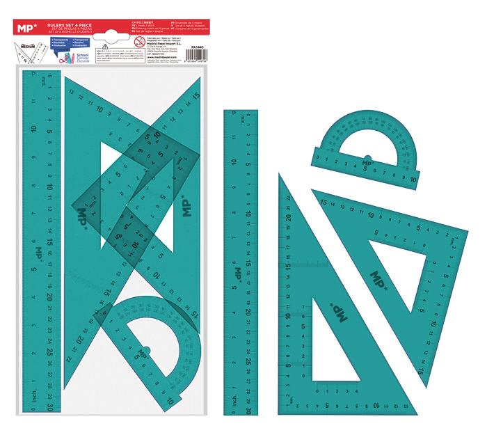 MP σετ χάρακες PA144C, διάφανο πλαστικό, 4τμχ, πράσινο