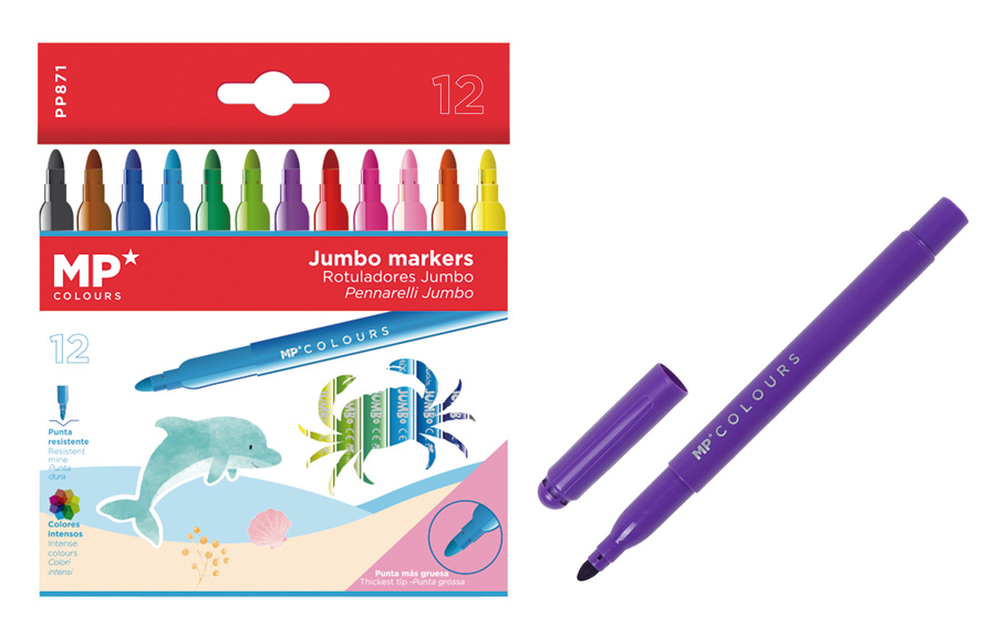 MP σετ χρωματιστών μαρκαδόρων Jumbo με χοντρή μύτη PP871, 12μχ