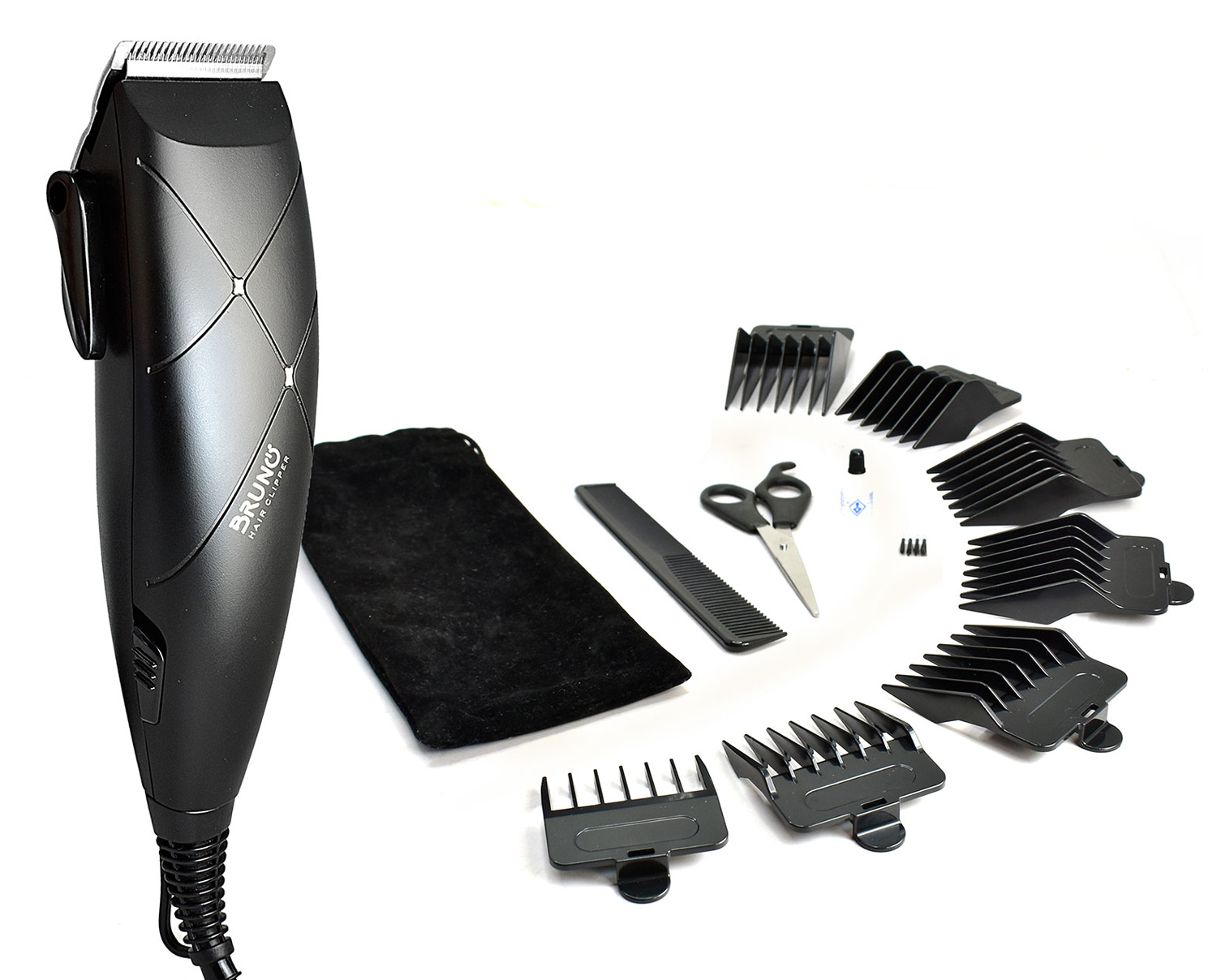 BRUNO BRN-0197 Σετ Κουρευτική Μηχανή Ρεύματος με εξαρτήματα και τσαντάκι, μαύρη