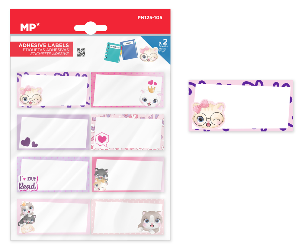 MP αυτοκόλλητες ετικέτες τετραδίων PN125-105, 65x32mm, 8 σχέδια, 16τμχ