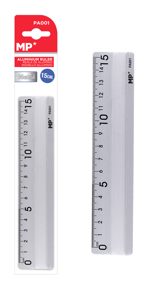 Μεταλλικός χάρακας αλουμινίου της MP, ιδανικός για ακριβείς μετρήσεις και σχεδίαση. Διαθέτει συμπαγή και ελαφριά κατασκευή για εύκολη χρήση στο σχολείο, το γραφείο ή το σπίτι.