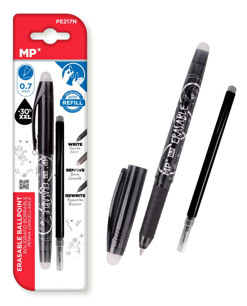 MP στυλό διαρκείας PE217N με ανταλλακτικό μελάνι, erasable, 0.7mm, μαύρο