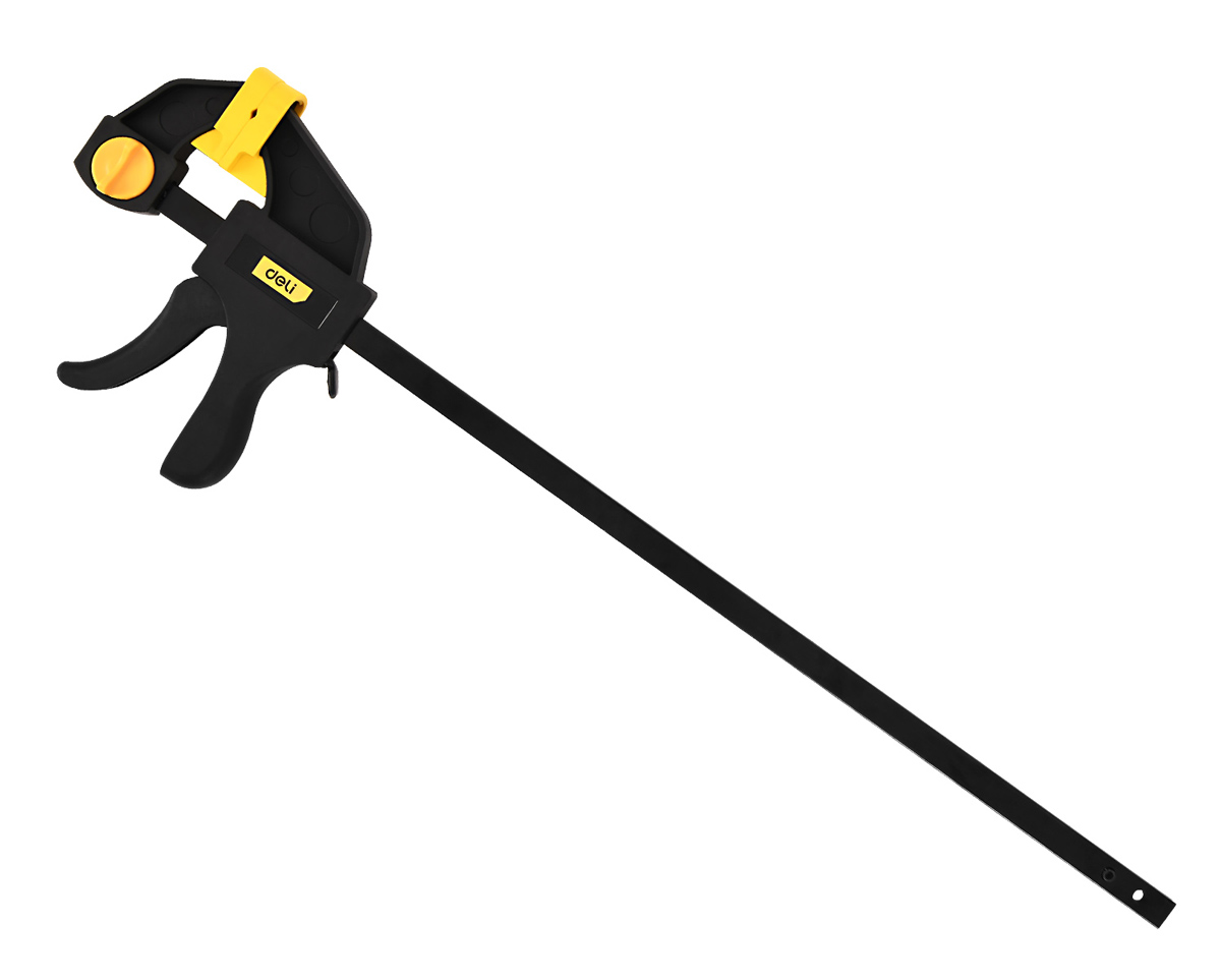Σφιγκτήρας σκανδάλης της Deli ιδανικός για γρήγορη και σταθερή συγκράτηση αντικειμένων. Εξοπλίζεται με σκανδάλη για εύκολη και σταδιακή σύσφιξη, ενώ, τα άκρα συγκράτησης, είναι επενδυμένα με μαλακό λαστιχένιο υλικό που δεν φθείρει τα αντικείμενα.