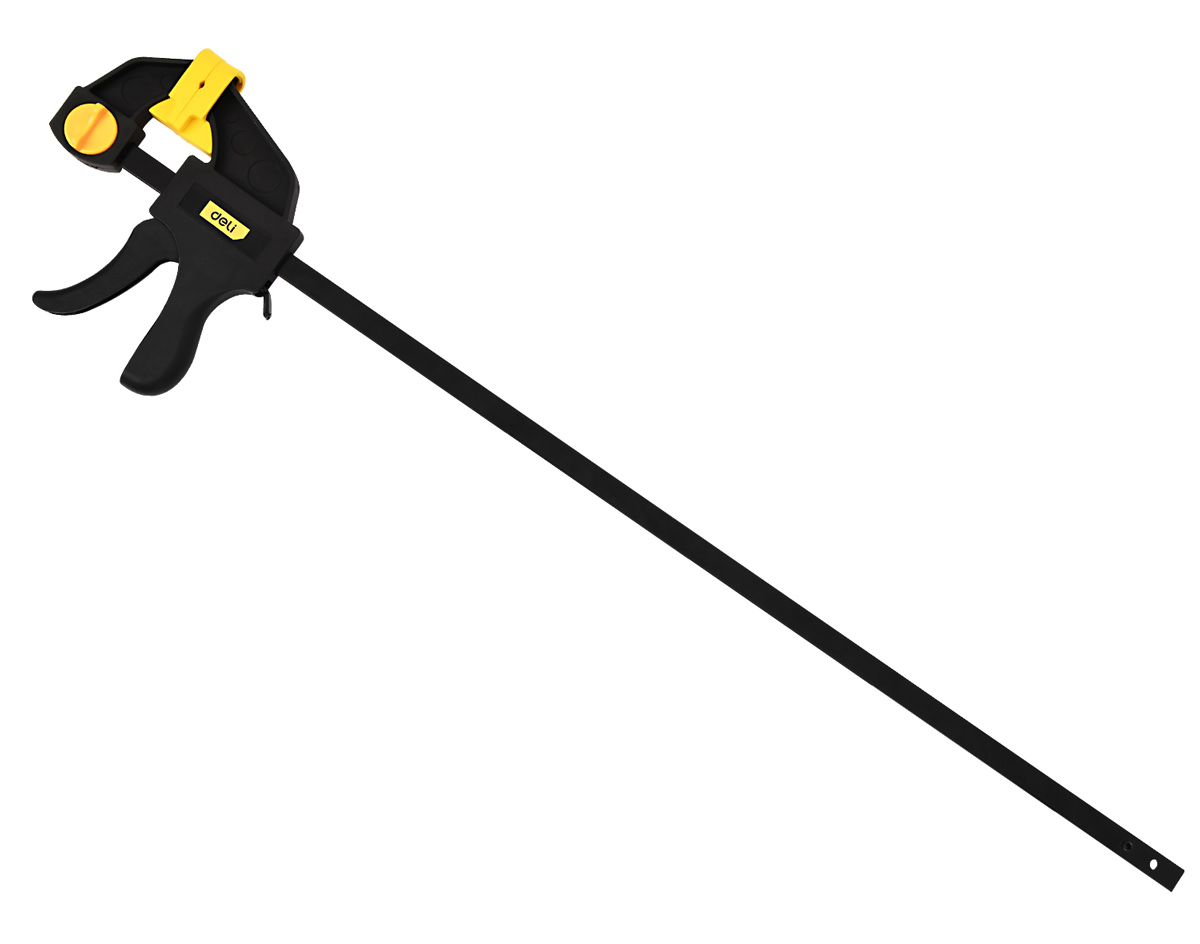 Σφιγκτήρας σκανδάλης της Deli ιδανικός για γρήγορη και σταθερή συγκράτηση αντικειμένων. Εξοπλίζεται με σκανδάλη για εύκολη και σταδιακή σύσφιξη, ενώ, τα άκρα συγκράτησης, είναι επενδυμένα με μαλακό λαστιχένιο υλικό που δεν φθείρει τα αντικείμενα.