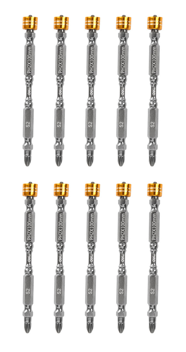 DELI σετ μύτες κατσαβιδιού DL255100 για δραπανοκατσάβιδο, διπλή κεφαλή, PH2x100mm, με μαγνητικό ring, 10τμχ