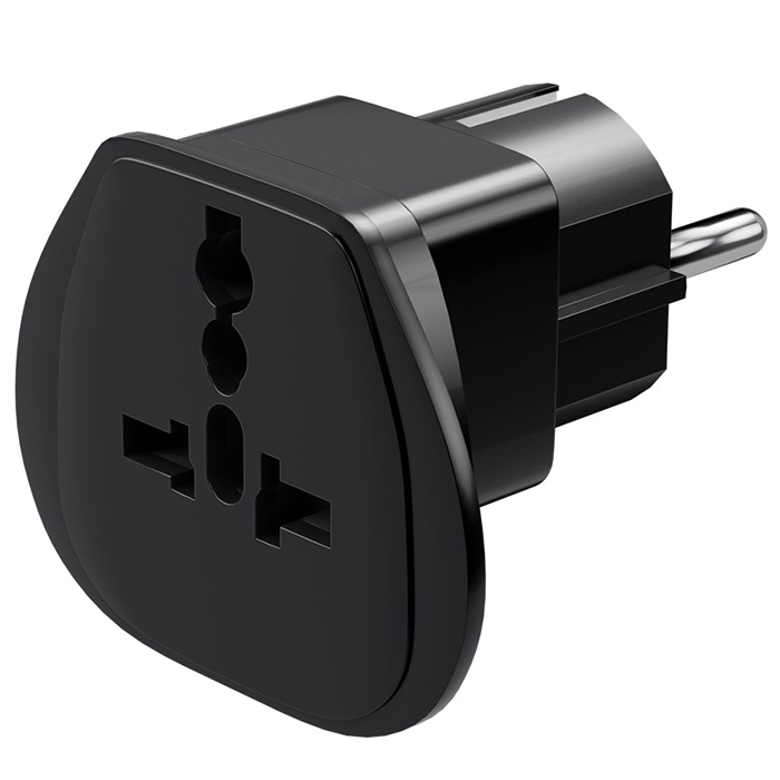 Universal αντάπτορας τροφοδοσίας σε schuko, σε μαύρο χρώμα.Σας επιτρέπει να συνδέσετε συσκευές από άλλες χώρες σε μία πρίζα schuko.Κατάλληλος για:- Ηνωμένο Βασίλειο- Ελβετία- Ιταλία- ΗΠΑ / ΙαπωνίαΧαρακτηριστικά:- Ιδανικό για σύνδεση διεθνών ηλεκτρικών συσκευών σε πρίζες συγκεκριμένων χωρών της Ευρώπης - Εύχρηστος και ελαφρύς σχεδιασμός - Τάση: AC 250 V- Μέγιστο ρεύμα: 16A- Ονομαστική ισχύς: 4000 W- Χρώμα: Μαύρο- Συσκευασία: Polybag with hookΟ αντάπτορας δεν μετατρέπει/μεταβάλλει την τάση! Θα πρέπει να είστε σίγουροι ότι η συσκευή μπορεί να λειτουργήσει με την τάση του ηλεκτρικού δικτύου πριν τη χρησιμοποιήσετε.